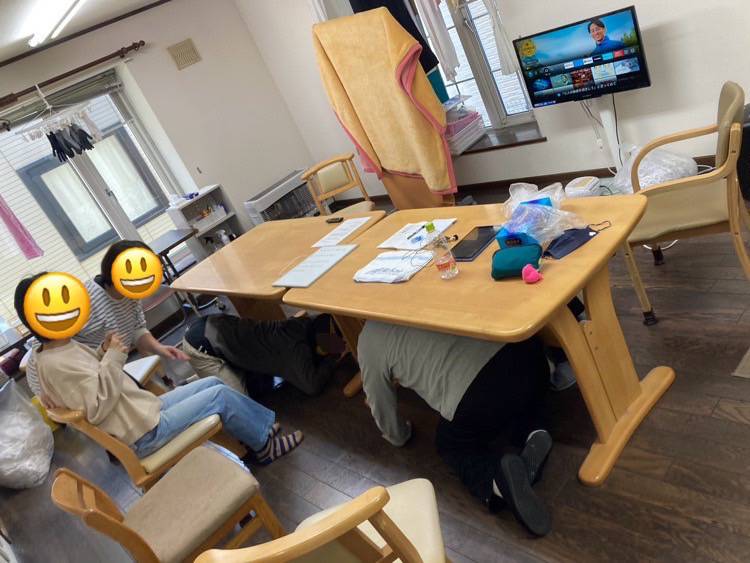 避難訓練を行いました 先日は、ぽるかで避難訓練を行いました。 みんなで災害時の対応について、ビデオを見て学んでいます。 今回は地震が起きたという想定で、机の下に隠れて身を守りました。 その後、安否確認をして、近くの公園に避難を行いました。